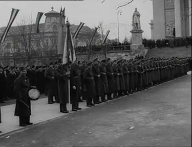 1944. március, Magyar Világhíradó 1047/4. bejátszás Levente ünnepség az egri érseki palota előtt