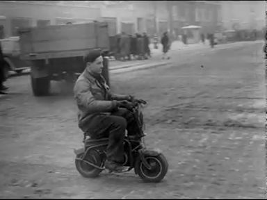 1948. március, Mafirt Krónika 110/5. bejátszás Kis méretű motorbicikli Varsóban
