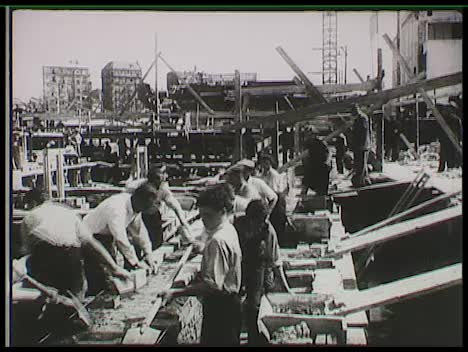 Építkezés, téglafalat rakó lengyel kőművesek (sztahanovista munkamegosztásban rakják a téglákat). Békeíveket hozó küldöttség, a dolgozók aláírnak (a békeív közelképe lengyel szöveggel, az aláírók neveivel. Wladyslaw Broniewski lengyel író aláírás közben. További lengyel közéleti személyiségek amint aláírásukkal csatlakoznak a kezdeményezéshez.