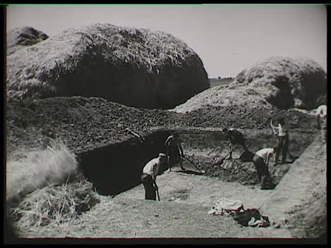 Termelőszövetkezeti gazdasági épületek és udvar Tiszaföldváron (tehénitató, vályú és kő kút, pásztor és kutyái, háttérben játszó gyerekek). Utánfutós traktor közlekedik. Földsiló készítésén dolgozó férfiak (kb. két méter mély gödör ásása, lapátolás, majd szénával fedés, végül egy silótöltő gépen kukoricaszárak aprítása és a verembe szórása). Érdeklődő gazdák figyelik a munkát. Papp János egyénileg dolgozó paraszt és családja a házuknál kiásott silóba aprítják a kukoricaszárat egy kézi aprítóval (szecskázás), majd fonott fűzvessző kosarakkal borítják a takarmányt a gödörbe, ahol a nők mezítláb tapossák azt, miközben beszélgetnek.