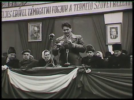 Túrkevei utcakép (földút közlekedő lovas kocsikkal, parasztpolgári házakkal a református templom tornyából filmezve). Túrkevei lakosok az utcán állva olvassák a termelőszövetkezetbe frissen belépett tagok neveit. Értekezlet a városi pártbizottság helyiségében (a falon Rákosi arcképe). Helyi lakosokból verbuválódott agitátorok indulnak útnak a Vörös Csillag Termelőszövetkezet irodájából. A város főterén pipázgató, beszélgető kucsmás, bajuszos parasztemberek. Belépési nyilatkozatot aláíró férfiak (a papírokat egymás hátán írva töltik ki). Elszámolás a tsz-irodán (a közösbe adott jószágok arányos kifizetése, 100 forintos bankjegyek). A Vörös Csillag tsz istállója, sertéshizlaldája (a közösbe adott tehenek, malacok megtekintése). 1951. febr. 2-án Túrkeve utcáira begördülnek a kormány ajándékaként átadott új mezőgazdasági gépek (az egyik felirata: "A gép most már az ember segítőtársa. Ennek a kombájnnak napi teljesítménye 20 K.H. föld. 70 ember és 5 pár ló munkáját végzi el!", rajta Sztálin arcképe, munkás és paraszt ábrázolása). Ünnepi nagygyűlés, Erdei Ferenc földművelésügyi miniszter beszéde (élő). A dísztribün hátterében Lenin és Rákosi arcképe, felirat: "Teljes erővel támogatni fogjuk a termelőszövetkezeti mozgalmat, elsősorban gépekkel!!!" A túrkevei tanácselnök, Hegedűs Pál beszéde (élő, mellette Erdei ül, cigarettázik és beszélget). Tapsoló, Rákosit, Sztálint éltető helyi lakosság. A túrkevei parasztok nézegetik a gépeket ("Ez a gép a krumpliszedő gép", "Új gépekkel előre a szocialista mezőgazdaságért", permetezőgép), majd énekkel (pl. Éljen, éljen Rákosi elvtárs sokáig c. dal), népzenészekkel, tánccal mulatnak.