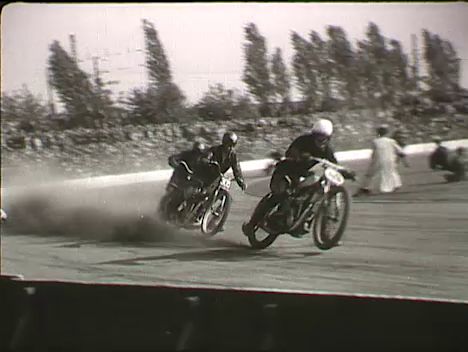 Tudósítás a népligeti Vasas Stadionban megrendezett országos salakmotoros versenyekről. Közönség a lelátókon és a pálya körül. Kesjár János és Domján Károly a startnál. 500 köbcentiméteres sportgépek versenye (start, bukások, versenyképek, fotóriporterek a füves pályán). Kramafart András, a Vasas versenyzője (22-es rajtszámmal) a győztes (a közönség motorjával együtt emeli a magasba, közelkép a mosolygó bajnokról).