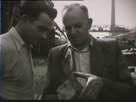 A Szabad Nép és a Népszava cikkei a Gazda-mozgalomról. Acélrudak hengerlése, dolgozó szakmunkások. Vasanyagok raktározása a gyár udvarán, anyagmozgatás daruval. Darabolás géppel. Gazda Géza, a Rákosi Mátyás Művek acélhengerművének helyettes vezetője a csepeli gyár udvarán munkatársaival beszélget. Az acélhengermű hulladék csöveit saját készítésű hengersoron dolgozza fel az üzem (fogókkal dolgozó munkásnők és férfiak). Felirat a Népszava székházában rendezett kiállításon: "A Gazda mozgalom eddigi eredménye a Rákosi Mátyás Művekben évi 47 millió forint megtakarítás!". A takarékossági mozgalom eredményeit bemutató tárlat, többek között az Egyesült Izzó, a Ganz, a bőripari dolgozók, a Prémipar Ktsz termékeivel.