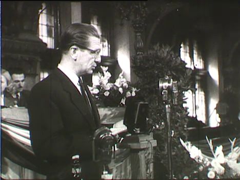 1951. október 13-14-én, hétvégén tartották Budapesten a Színház- és Filmművészeti Szövetség II. Konferenciáját. Az Újvárosháza Díszterme (Váci utca 62-64.), pillanatképek résztvevőkről. Ladányi Ferenc, Gellért Endre, Bán Frigyes előadásai. Révai József beszéde (élő, részlet). A résztvevők között Gyurkovics Mária, Veres Péter, Mészáros Ági, Sulyok Mária, Pártos Erzsi, Várkonyi Zoltán, Bárdy György, Török Vidor, Pethes Sándor, Rózsahegyi Kálmán; Csen Csi Tang és Vang Guen kínai vendégek tolmácsnőikkel.