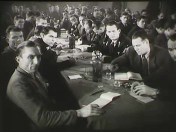 A Bányász Szakszervezet Szrogh György tervezte székháza a Gorkij (ma: Városligeti) fasor 46-48. sz. alatt (külső, tetején vörös csillagok és bányász logó). Ülésterem küldöttekkel (az elnökség két oldalán Lenin és Sztálin mellszobra, a háttérben Rákosi arcképe és felirat: "Termelj ma többet, mint tegnap", az asztalokon csatos üvegek), Loy Árpád beszéde (élő). Alberttelep (ma Múcsony (Borsod-Abaúj-Zemplén megye) község része), bánya bejárata, műszakváltás, kezükben petróleumlámpával dolgozni induló bányásznők és férfiak (feliratok: "Termelj ma többet mint tegnap", "Rákosi 5 éves tervért", "Sztálin zászlaja alatt többtermeléssel előre a békéért!") Bányászok munka közben (szénfejtés csákánnyal, lapátolás, bányafa szállítása, karbantartás, szállítószalag és csillék). Farkaslyuk (Borsod-Abaúj-Zemplén megye), Kossuth Géza és munkatársai szénfejtés közben (fúrás, robbantás, csákányozás, lapátolás szalagra, teli csilléket szállító villanymozdony, háttérben a bánya bejárata Rákosi és Sztálin arcképéve, vörös csillaggal, felirat egy csillén: "Termelj ma többet, mint tegnap!").
