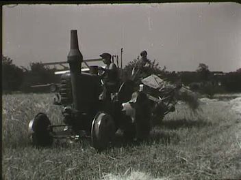 Dombos táj Tolna és Baranya határán, Mágocs és Dombóvár határában (Hegyháti járás). Szélben hullámzó árpamező. Traktorhoz szerelt arató-kévekötőgép munkában, dolgozó keresztrakó férfiak, mögöttük traktor szánt, gólya ballag odébb a gép útjából. Őszi árpa cséplése a szegedi határban (kévékkel megrakott lovas szekér érkezik a cséplőgéphez, cséplés, zsákolás (dolgozó férfiak és nők). Szekéren viszik az árpát a beadásra (a kocsikon vörös és magyar zászló, propaganda plakát).