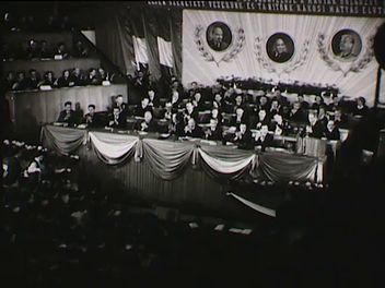 Budapest. A fővárosban tartották a Magyar Szakszervezetek XVIII. Kongresszusát, leghatalmasabb tömegszervezetünk harci seregszemléjét. Az építőipari dolgozók szakszervezetének kongresszusi termében egybegyűltek a termelőmunkában kitűnt dolgozók, a szocialista munka hősei. A Szakszervezetek Országos Tanácsa főtitkára, Kristóf István beszámolóját a következő szavakkal fejezte be [Kristóf István]: "Fogadjuk meg, elvtársak pártunknak, fogadjuk meg Rákosi elvtársnak, hogy jó szakszervezeti munkával, harcossan (sic!) és fáradhatatlanul segítjük a párt történelmi jelentősségű (sic!) küzdelmét, az ötéves terv végrehajtásáért, a szocializmus alapjainak lerakásáért, hazánk felvirágoztatásáért, a béke megvédéséért." A küldöttek nagy lelkesedéssel fogadták a kongresszuson megjelent Rákosi elvtársat, népünk szeretett vezérét. Pártunk Központi Vezetősége nevében Gerő Ernő elvtárs üdvözölte a kongresszust [Gerő Ernő]: "A Szakszervezetek fő feladata most és a továbbiakban: a terv teljesítésének megszervezése, a munkaverseny, a Sztáhánov-mozgalom (sic!) kifejlesztése, kiszélesítése s a munkafegyelem megszilárdítása révén. Ezt a feladatot, amely egyben a béke megvédéséért folytatott harcunk alapvető kérdése is, a magyar szakszervezetek nagy pártunk, a Magyar Dolgozók Pártjának biztos vezetésével meg tudják, és kétségtelenül meg is fogják oldani! Éljen a Magyar Szakszervezetek XVIII. Kongresszusa!" Az Egységes Holland Szakszervezeti Szövetség főtitkára, Berthus Brandez (sic!) a Szakszervezeti Világszövetség nevében üdvözölte a magyar dolgozókat. A Szovjet Szakszervezetek Központi Tanácsa Elnökségének tagja Pavel Jefanov a szovjet dolgozók sokmilliós serege testvéri üdvözletét tolmácsolta. A Sztálin Vasmű nagykohó építőinek felhívását Klausz Lajos Kossuth-díjas főmérnök tolmácsolta [Klausz Lajos]: "A nagyolvasztó építői elhatároztuk, hogy hazánk fölszabadulása ünnepének tiszteletére március 20-tól - április 4-ig Fölszabadulási Hetet tartunk, melynek keretében újabb termelési győzelmekkel bizonyítjuk be a fölszabadító Szovjetunió iránt érzett hálánkat és forró szeretetünket." A Szakszervezetek XVIII. Kongresszusa hatalmas lendületet adott egész munkásosztályunknak a szocialista verseny új, nagy sikerei felé.