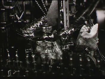 Az Egyesült Izzó gyártelepének főbejárata a Váci úton (épület, cégnév ("Egyesült Izzólámpa és Villamossági Rt.", a tömb tetején vörös csillaggal; az épület előtt elhaladó lovaskocsi, villamos). Villanykörtegyártó üzemegység (automata gépek, dolgozó munkásnők: villanykörték izzószálainak készítése, minőség-ellenőrzés, meghibásodások javítása, izzók világításpróbája).