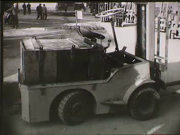 Rácz Sándor konstruktőr és egyik kolléganője a győri Wilhelm Pieck Vagon- és Gépgyár műszaki tervezőasztalainál (tervrajzok, műszaki rajzok az asztalokon). Dolgozó rakodómunkások a gyár udvarán (kézi erővel kiskocsira pakolt fémlemezek). Munkák a Rácz Sándor tervezte elektromos targoncával (emelővillával, bálafogó szerkezettel, szénrakodó kanállal ellátott típusok különböző anyagmozgatási feladatok elvégzésekor). A targonca szerkezeti részei és működése (közelképek és totálok használat közben). A gyárudvaron felsorakozott és közlekedő targoncák.