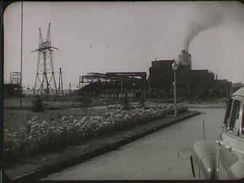 A Mátrai Erőmű totálképei (villamos távvezeték, füstölgő kémények, gyárépületek, gyalogos, autó- és kerékpárforgalom, kis nyomtávú gőzmozdony, közlekedő csillék felsővezetéken). Szerelőcsarnok, turbina javításán dolgozó szakemberek (egy berendezésen Láng NV felirat, villáskulcs, tolómérő). Kazánszerelés, rostélyok tisztítása, kémény javítása (dolgozó hegesztő, kőműves szakmunkások). Az élüzem jelvény és felirat ("A munka becsület dolga") kihelyezése a vállalat bejáratához (ötágú csillag, közepén Rákosi-címerrel). Az erőmű kéményei, távvezetékek, transzformátorok.