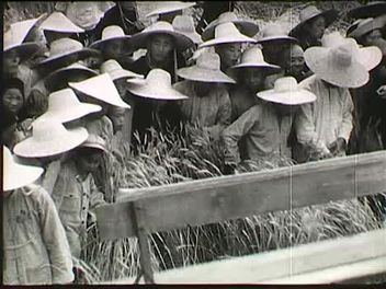 Hullámzó búzamező, gépesített betakarítási munkák (arató kombájnok, lánctalpas traktorok). A kombájn működésének bemutatása a szántóföldön (kínai parasztok csodálják a gépet). A teherautóra öntött gabona elszállítása. A tisztítandó búza levegőbe szórása (a pelyva elkülönítése), lapátokkal dolgozó emberek egy szövetkezet udvarán.