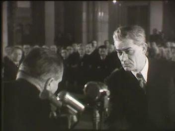 Dobi István az emelvényen, beszédet mond, mellette Nagy Imre. Jelen van még Rónai Sándor, Gluscsenko. Díjak kiosztása: Nádasdy Kálmán, Szabó Pál író, Mészáros Ági és Makláry Zoltán. Litmann Imre átveszi a díjat. Sedlmayer Curt, Albrecht József, és a többiek átveszik a díjakat. Balla János beszédet mond, taps.
