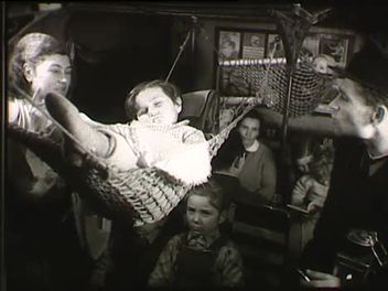 Vonatra szálló nők és kisgyerekek. Függőágy a vagonban, benne alvó kislány. Mosolygó kalauz.