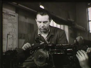 Csányi János a Könnyűipari Gépgyártó Vállalat sztahanovista szerszám készítője az első magyar gombfelvarró-géphez a felső kar furatait készíti. A géphez a főtengelyt Kádár Gyula sztahanovista esztergálja. Meső Gyula és Németh Ferenc sztahanovista műszerészek közel másfél hónap alatt készítették el a magyar gombfelvarró-gép első két mintapéldányát. Kézzel ötven-hatvan darabot. Ezekkel a gépekkel pedig öt-hatszáz darab gombot lehet felvarrni óránként.