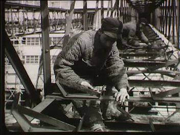 Építkezések a Sajó völgyénél. Daruk, marógépek, néhány kész épületrész. Munkások munkaközben az építkezésnél.