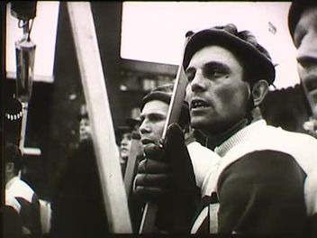 A tizennégyszeres jégkorong világbajnok, a legyőzhetetlennek tartott kanadai csapat és a jégkorong sportban újoncnak számító szovjet válogatott a stockholmi stadionban küzdött meg az 1954. évi világbajnoki címért. Általában Kanadát tartották esélyesnek, de a sötétmezes szovjet csapat azonnal támadásba lendült. Jól érvényesül a szovjet játékosok gyorsasága. Most is mennek, támadásuk végig a pályán. Lövés, gól! Vezet a szovjet csapat. Ez itt Bodrov, aki most ellenállhatatlanul tör előre, és pazar lövéssel újabb gólt szerez. Bodrov nevét jól ismerjük, ő az egyik legjobb szovjet labdarúgó, de mint ez a gól is mutatta, a jégen is a világ legjobbjai közé tartozik. A szovjet játékosok ragyogó bottechnikával, remek lövésekkel négy-nullás vezetésre tesznek szert, amikor a kanadaiak is ízelítőt adnak nagy tudásukból. Szép kanadai támadásuk vége a pályán. A kanadai játékos visszajátszik, lövés, gól! Az eredmény négy-egy. A második harmadban a kanadaiak továbbra is támadnak. Ott vagyunk a szovjet kapu előtt. Micsoda remek szerelés, nagyszerűen szerelt a szovjet játékos. Máris Bodrové a korong. Kicselezi a kanadai játékosokat, megkerüli a kaput, most visszafelé játszik Szubaljov, lő, gól! Szovjet válogatott öt-egyre vezet. Újabb tarthatatlan szovjet támadások még két további gólt eredményeznek. A szovjet játékosok gyorsasága alaposan elbánt a kanadaiak közismert keménységével. A volt világbajnok csak hét-egyes szovjet vezetés után szerez még egy gólt, és ezzel beállítja a végeredményt. Koblov, a szovjet csapat kapitánya boldogan veszi át a világbajnoki kupát. A szovjet csapat hét-kettes győzelme a jégkorong történetében éppen olyan jelentőségű, mint a labdarúgás történetében a magyar válogatott Anglia ellen aratott hat-hármas győzelme.