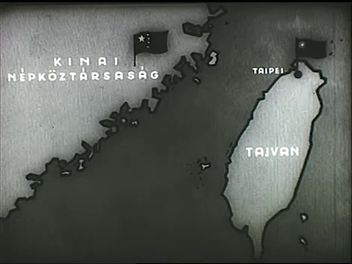 USA, Tajvan, Kína térkép animáción. Légi felvétel Taipeiről. A Yu Tung nevű hajó a kikötőben, katonák, aknavetők, karabélyok a parton. Amerikai csapatszállító repülőgépek. Csou En-laj beszél a kínai képviselőházban. Kézfelemeléssel szavazó kínaiak, köztök Mao Ce-tung.