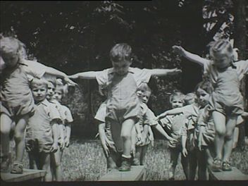 Lépcsőn lerohanó gyerekek a Kőbányai Sörgyár óvodájában. Gyerekek futkároznak az udvaron. Az óvó nénivel tornázó kicsik. Egyensúlyozás padon. Talicskaverseny. Nevető kislány. Az óvó néni a sípjába fúj. Lány és fiúcsapat kosárlabdázik. Tapsoló, és szurkoló gyerekek.