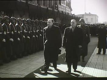 A hó borította Románián át robog a vonat. A bukaresti pályaudvaron tízezrek várják a magyar párt-, és kormányküldöttséget. Kádár János elvtársat, a küldöttség vezetőjét Apró Antal, Kállai Gyula elvtársakat és a küldöttség többi tagját Gheorghiu Dej elvtárs és a Román Népköztársaság más vezetői fogadják. Gheorghiu Dejnek, a Román Munkáspárt első titkárának üdvözlő szavaira a magyar küldöttség nevében Kádár János, a Magyar Szocialista Munkáspárt első titkára válaszol. A baráti Román Népköztársaság fővárosában szeretettel fogadták népünk küldötteit.
