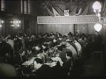 Tanácsterem a Parlamentben. Küldöttek. Nagygyűlés. Afrikai küldött kendőt kap egy magyar lánytól. Mindenki tapsol. Felszólalók.