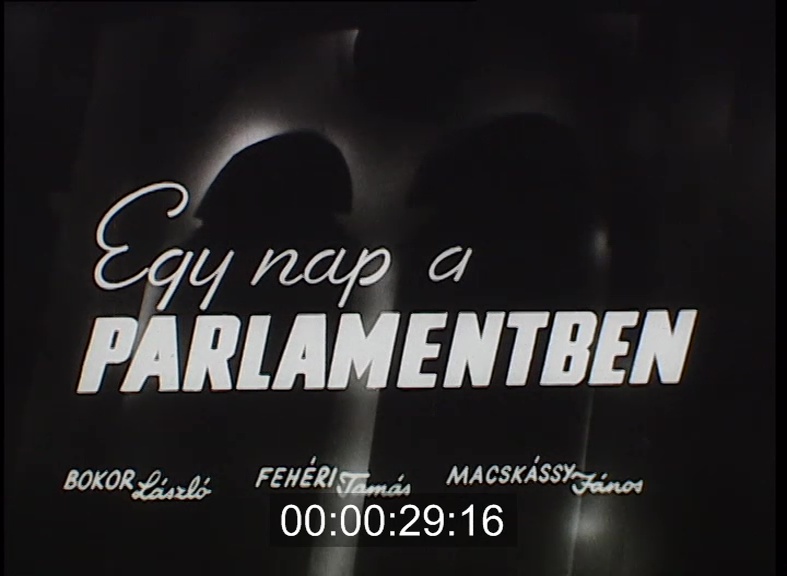 Parlament: az elnöki csengő, Rónai Sándor beszédet mond. Jelen vannak: Sík Endre, Révész Géza, Ortutay Gyula, Aczél György, Szabó Piroska, Szakali József, Mihályfi Ernő, Szabó Pál író. Kiss Károly beszél, szinkron. Szavazás kézfeltartással. Kállai Gyula beszél. Mögötte Marosán György. Münnich Ferenc, Kádár János, Dobi István, Olt Károly. Dr. Antos István beszél. Parlamenti folyosó képviselőkkel. Antos István nyilatkozik a filmhíradónak, szinkron.