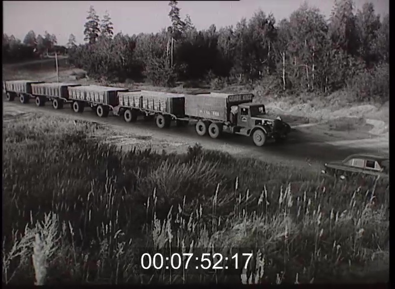 Új szállító eszközt raknak meg gabonával a Krakinjarszki Szovhoz automata rakodói. Alexander Zsorin és társai a tehergépkocsi után négy pótkocsit szereltek. Az autóvonat hatvan tonna gabonát szállít egyszerre.