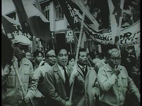 Tokió. Ezek a felvételek néhány hónapja készültek Kishi japán miniszterelnökről a nyugat-német kancellár látogatásakor. Az akkor még mosolygó Kishi és kormánya ellen napról-napra 100 ezrek tüntetnek Tokióban. Követelik az amerikaiakkal kötött katonai szerződés hatálytalanítását. Az amerikai nagykövetség épülete előtt 10 ezrek tiltakoznak Eisenhower elnök tervezett látogatása ellen. Végül is a Kishi-kormány kénytelen volt a meghívást visszavonni. Hatalmas méretű ülősztrájk a Parlament előtt. Az első sikerek után a japán nép folytatja harcát.