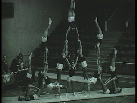 Gúlagyakorlatok. Pontozó bírók. Tapsoló nézők. A győztes Újpesti Dózsa produkciója.