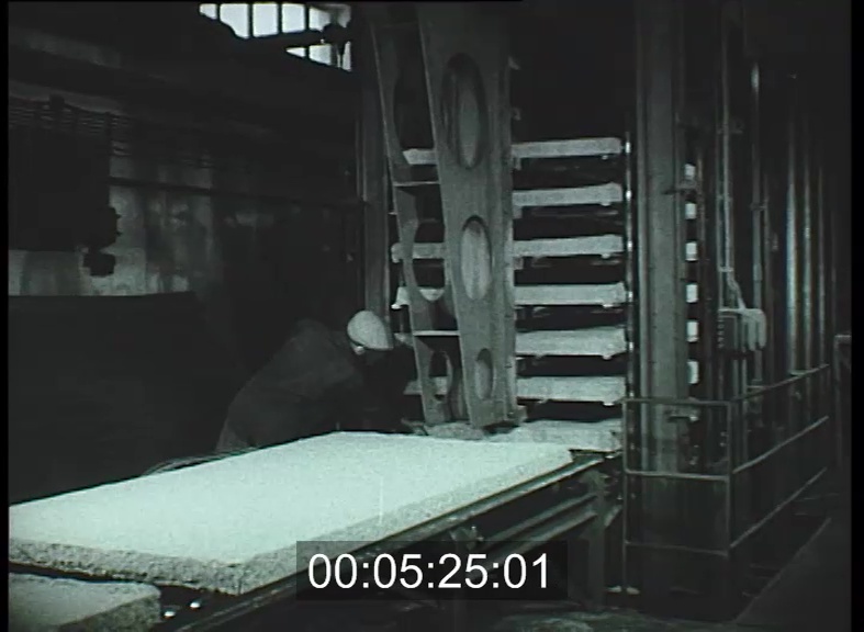 Egy év óta működik Szombathelyen ez a korszerű faforgácslemez gyár. A farönkökből nagyteljesítményű gépek szeletelik, majd a lemezformákban gyantaporral keverik a forgácsot. A meleg présen 150 fokos hőmérséklet mellett hidraulikus nyomással kettő és fél centiméter vastagra préselik össze a keveréket. Ezek a lemezek rendkívül tartósak. Laboratóriumban vizsgálják az anyag hajító szilárdságát: 320 kilogramm nyomásnál törik a lemez. A Szombathelyi Forgácslemez Gyár évente százezer bútorlapot készít. A bútorgyárak különböző kombinált bútorokat és főleg szekrényeket készítenek ezekből a lemezekből