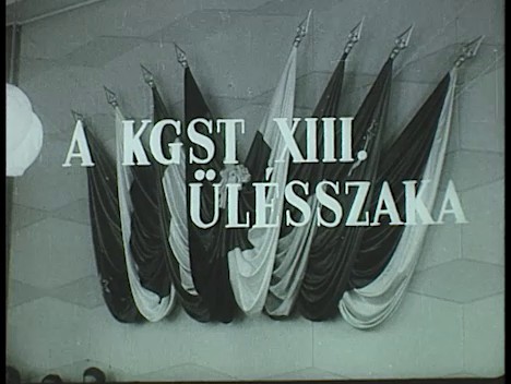 Az ülésterem. Apró Antal megnyitja az ülést. A tagországok (Szovjetunió, NDK, Lengyelország, Románia, Csehszlovákia, Albánia, Bulgária) küldöttei. Apró Antal aláírja a jegyzőkönyvet. További aláírók: A. Kelezi (Albán Népköztársaság Minisztertanácsának elnökhelyettese), Sz. Todorov (Bolgár Népköztársaság Minisztertanácsának elnökhelyettese), B. Leuschner (Német Demokratikus Köztársaság Minisztertanácsának elnökhelyettese), P. Jaroszewicz (Lengyel Népköztársaság Minisztertanácsának elnökhelyettese), A Birladeanu (Román Népköztársaság Minisztertanácsának első elnökhelyettese), V. N. Novikov (Szovjet Szocialista Köztársaságok Szövetsége Minisztertanácsának elnökhelyettese), Sz. Vina (Csehszlovák Szocialista Köztársaság Tervhivatalának első helyettese) Ázsiai megfigyelő országok képviselői (Mongólia, Vietnam, Kína)