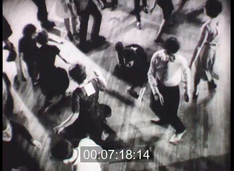Sophia Loren és partnerei tánc közben. Anglia, a 18 órás rekord megdöntése: a győztes táncos. Egy teljesen kimerült versenyzőt hordágyon visznek el a mentők.