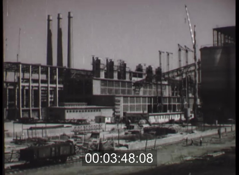Kilátás a Naszályról, a Duna, előtte a DCM. A DCM kéményei, a hatalmas épületek, szállítószalagok közelről. Szerelés, a forgó csőkemence hegesztése, kábel rögzítése új módon.