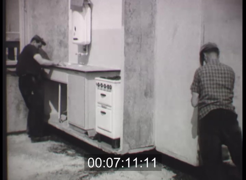 Alaposan kisikálják a fürdőkádakat, mielőtt útra kél a legújabb épületelem. Egyik oldala beépített fürdőszoba, másik oldala konyha. Ilyen módszerrel épülnek már a lakások Rostockban, a Német Demokratikus Köztársaság legforgalmasabb kikötővárosában.
