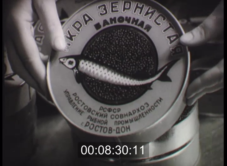 Sirályok a hajó körül. Az orosz halfeldolgozó hajó a tengeren. A hálóból a fedélzetre öntik a halzsákmányt. Felcsévélik a hálót - hatalmas rákokkal. Csónakba rakják a hálóval kifogott tokhalakat. (Don). A rosztovi halfeldolgozó kombinátban feldolgozzák őket. Vízsugárral mossák a felakasztott halakat. Készülnek a kaviárkonzervek. Egy nő dobozokba tölti a fekete kaviárt, a másik lezárja a dobozt.