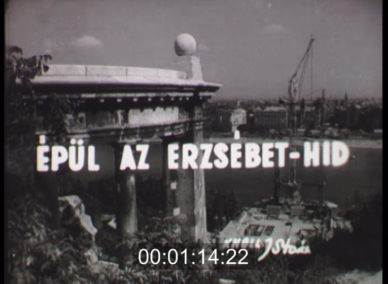 A pesti oldal látképe a Gellért-hegyről. Előtérben daru és betonalap. Oszlopok, tartóelemek beemelése. Trükkfilm mutatja be milyen lesz a híd. A hídfőtömbök. Acélrudak a lehorgonyzó kamrában. Készülnek a sodronykötelek a Kábel- és Sodronykötélgyárban. Szakítógép próbálja ki az acélhuzalokat. Felhalmozott sodronykötelek. Maketten a híd és a hídfő környéke.