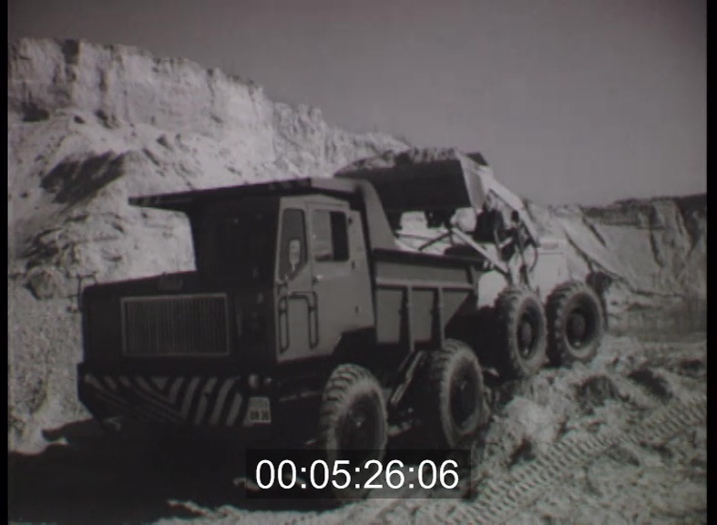 A győri Wilhelm Pieck Vagon- és Gépgyár új járműve. Homokbányában próbálják ki az új dömpert.
