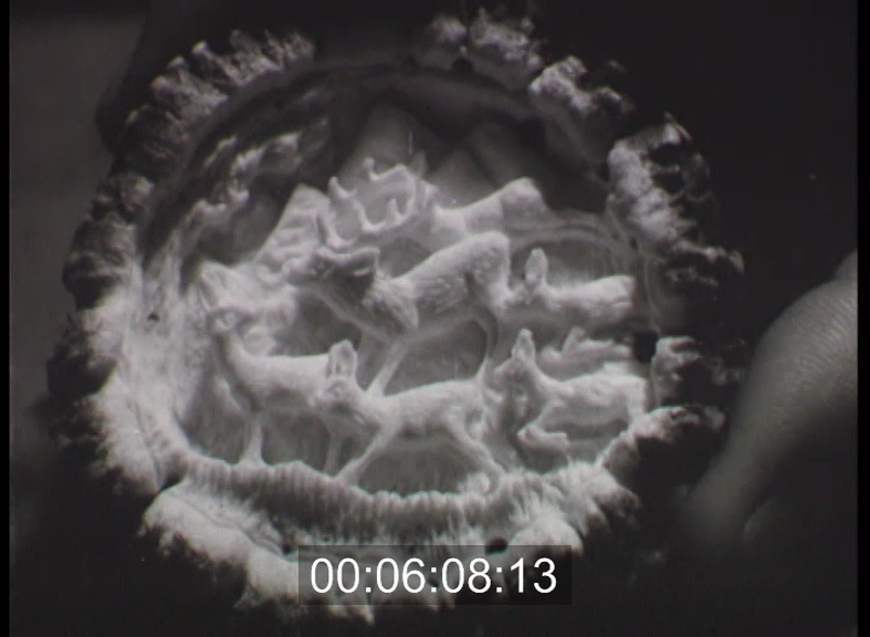 Szalajka-völgy. Pisztrángos tó. Szarvasagancsokat vesz fel a földről Simon Károly erdész és hazaviszi. Otthon leteszi az asztalra és faragni kezd. Közeli a faragásokról. Elkészült faragások.