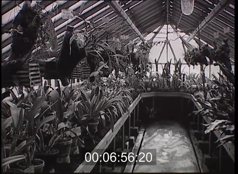 Pálmák, orchideák, kövirózsa, papaya a melegházban.