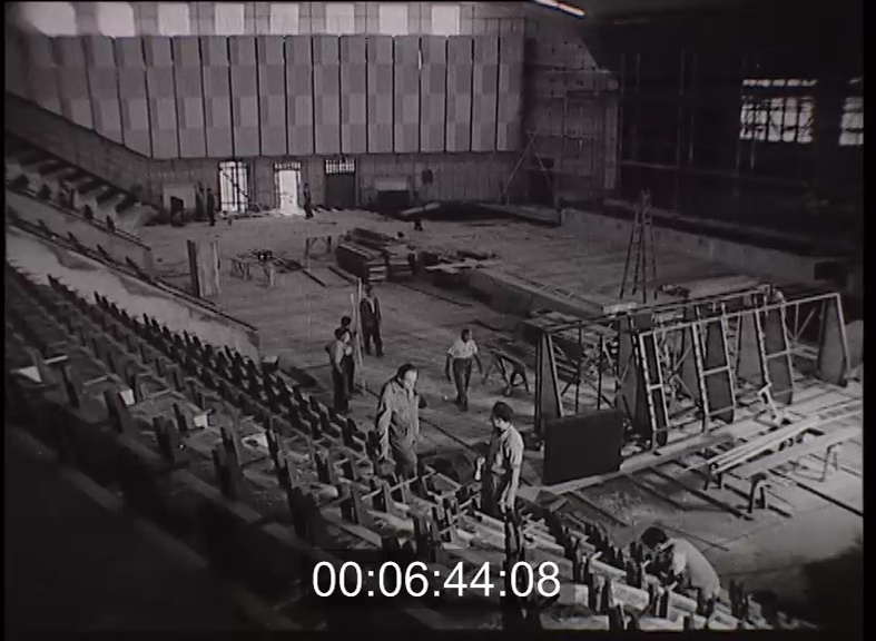 Építik az új sportcsarnokot. Lengyel-magyar röplabda-mérkőzés a frissen elkészült csarnokban.