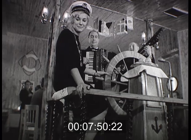 Vasmacskát formázó dugóhúzó. Stramli-zene mellett étkező vendégek. Hajóbelsőnek berendezett étterem.