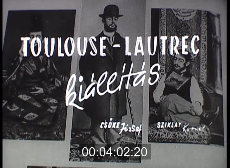 Szépművészeti Múzeum. Fényképeken a festő. Párizsi utcák filmen, Moulin Rouge /rajzain is/.Toulouse-Lautrec rajzok, festmények, grafikák, plakátok. Rigó Jancsi és Chimoy hercegnő.