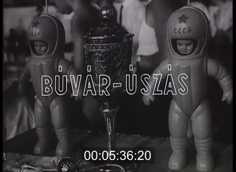 Az űrhajósok díjáért zajlott le Moszkvában a világ első víz alatti búvár úszó versenye. A rajt előtt a medence sávban elhelyezik a felszerelést, ezt kell a verseny közben az úszóknak magukra venniük. A táv hossza 50 méter víz alatt. A víz alatt külön bíró figyeli a szabályok betartását. A felszerelést pillanatok alatt kell felszedni a legkisebb időveszteség nélkül. Ez a kombinált úszás a békaemberek állóképességét és gyorsaságát fokozza. Ivanov, a neves mellúszó 48 másodperc alatt úszta végiga távot. Indul a második csoport. A távot még rövidebb idő: 46,8 másodperc alatt úszta végig a moszkvai Nauncsev, s ezzel megnyerte az űrhajósok díját.