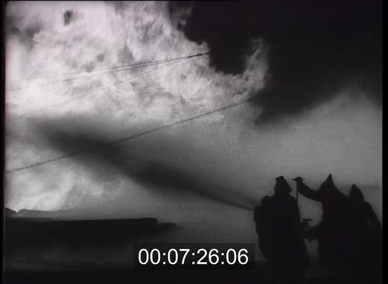 A kijevi olajmezőkön az egyik 150 atmoszféra nyomás alatt lévő fúrólyukból hirtelen láng csapott fel. Az olajmunkások éjjel-nappal megszakítás nélkül küzdöttek a lángtenger megfékezéséért. Óriási hőségben igyekeztek a tüzet lokalizálni, hogy a robbantó szakemberek megközelíthessék a kitörés gócát. Az erőfeszítés sikerrel járt, újra a csőhálózatban ömlik a gáz Novorosszijszk felé.
