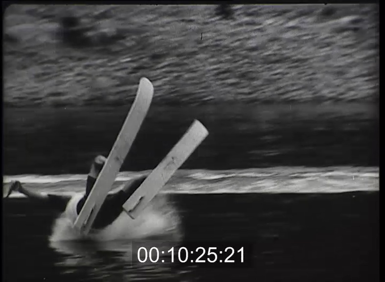 Vízisízők és bukásaik szórakoztató bemutatója.