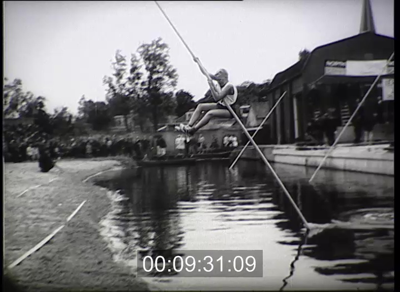 Hollandia a csatornák országa, érthető hát, ha ehhez kapcsolódik egyik legkedvesebb, úgy is mondhatnánk, népi hagyományokkal rendelkező sportja, a vizesárok-rúdugrás is. Ez a nagy testi erőt és ügyességet igénylő sport az idei országos bajnokságon is kellemes élményt nyújtott a közönségnek. Akadtak, akik a vízben kötöttek ki. Végül 14 méteres rekorddal egy 20 éves fiatalember nyerte a versenyt.