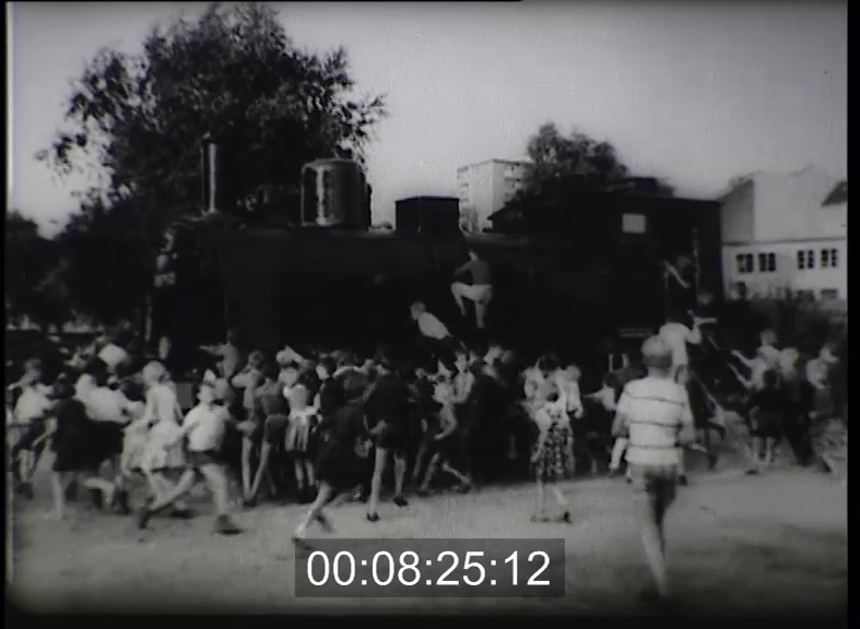 Öreg gőzparipa ifjak szórakoztatására. A berlini vasutasok gyerekeknek ajándékozták ezt a 35 tonnás mozdonyt, amit a lurkók most mohó kíváncsisággal vesznek birtokukba. A kiszolgált masina 54 évig robogott a síneken, de biztos, hogy soha nem volt ennyire zsúfolt.