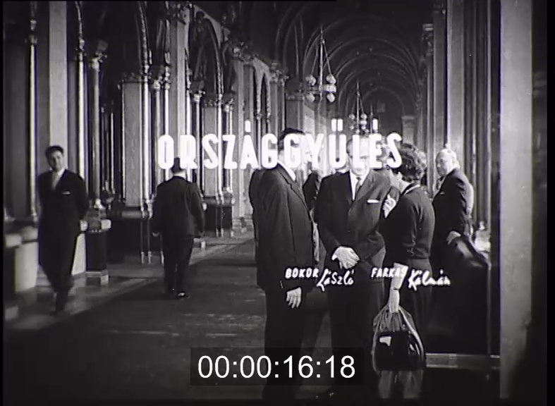 Parlamenti folyosó képviselőkkel. Szirmai István, Kádár János, Münnich Ferenc. Az ülésteremben Apró Antal, Kállai Gyula, Gáspár Sándor, Nezvál Ferenc. Ilku Pál az oktatási reformról beszél. Cseterki Lajos felszólalása. Kállai Gyula beszéde. Mellette Dobi István látható, majd felszólaló miniszterek és képviselők. Losonczi Pál, Csanádi György felszólalása.
