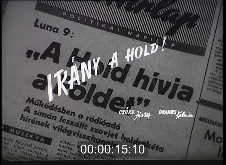Az emberi gondolat és tudomány diadala. Ismét közelebb jutottunk a világűr teljesebb megismeréséhez. A Szovjetunióból felbocsátott Luna 9. automatikus űrállomás február 3-án simán leszállt a Hold felszínére. A térkép mutatja a Hold űrállomás leszálló térségét. A képen a Luna 9. által a Holdra juttatott szovjet jelvények. A Földünk kísérőbolygójáról sugárzott televízió felvételek. Hasonlót még nem látott emberi szem. A szovjet tudósok ezzel a fantasztikus teljesítménnyel ismét megmutatták, hogy a békés célú tudomány mit nyújthat a ma és holnap emberének.