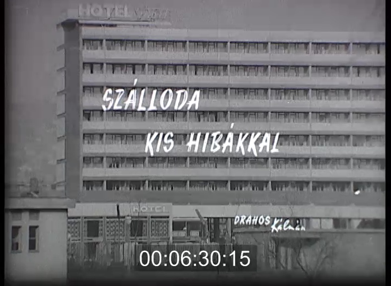 A lágymányosi feneketlen tó szomszédságában megnyílt Budapest legújabb szállodája, a Sport szálló. Az érkező vendégeket egyelőre még ilyen kép fogadja. A Kertészeti Vállalat nem tudja a parkot elkészíteni, mert még mindig a terasz burkolásához szükséges kőlapok hevernek itt. A hét emeletes szálloda 182 szobájában 364 vendég helyezhető el. Minden szoba kétágyas, és valamennyihez fürdőszobát is építettek. Az első vendégek máris megérkeztek. A lakószobák szép és modern berendezéséhez azonban elfelejtettek bőröndtartót tervezni. A beépített szekrény felső polcaira bizony csak üggyel-bajjal lehet a bőröndöket elhelyezni. Szórakoztatásról is gondoskodik a szálló eszpresszója, és a 80 férőhelyes igen hangulatos bár. Kitűnő ételek készülnek a korszerűen berendezett világos konyhában. Az ország ötödik legnagyobb szállodájának 160 férőhelyes étterme minden igényt kielégít.