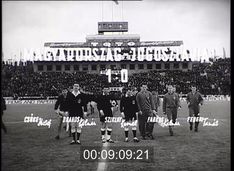 Az év első válogatott mérkőzésén a diósgyőri Tamás Gyula és a ferencvárosi Szűcs Lajos személyében két újoncot avatott a magyar csapat. Több ezer jugoszláv szurkoló kisérte el kedvenceit Budapestre a Népstadionba a 23. Magyarország-Jugoszlávia válogatott találkozóra. Az első félidőben még élénk játékot láthatott a közönség. A jugoszlávok jobbára 8-9 emberrel védekeztek, mint ahogy most is, elsurran a labda a lábak között és végül, ha üggyel-bajjal is, de fölszabadít a jugoszláv védelem. Igaz nem sokáig! Ihász rácsap a labdára, aztán balra küldi Rákosihoz, ő tesz vele még néhány métert beível középre Albert fejel, mellé! Egy a szórványos jugoszláv ellentámadások közül. De vajon mit keres Varga Zoltán a magyar tizenhatos tájékán, ez a tipikus támadó csatár. A mezőny egyik legjobbja Albert gurít tovább, ott van Farkas lába előtt a labda, ő megvárja, amíg a jobb szárnyon Káposzta fölzárkózik a támadáshoz. A jobbhátvéd fejéről most odakerül a labda Molnárhoz, de mint annyiszor máskor most is az alapvonalon túlra hárít a kemény jugoszláv védelem. És egy jellemző kép az első félidőről: egyetlen játékos a magyar térfélen Tamás Gyula, aki messziről figyeli, hogy Ihász beível középre jól jön a labda Farkasnak, ballal lő, de fölé! És a mérkőzés sorsát eldöntő lövés: Bene lő bombagól! Magyarország-Jugoszlávia 1:0.